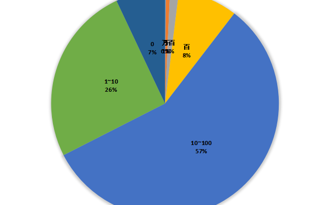 另從我從關鍵詞數(shù)據(jù)中整理了所有關鍵詞的搜索量情況,并制作了占比圖??梢詮膱D中看出,搜索量在10~100之間的詞,是主要的獲得排名的詞。