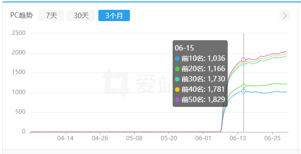 從愛站已有排名的關鍵詞中,搜索量在10~100的關鍵詞占比最高;在我拿到的2000個關鍵詞中,10~100的就有1500多個,其中有360多個關鍵詞排名第一。