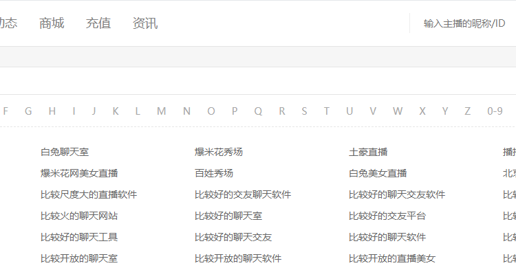 導航頁有A~Z共26個字母,每個字母一個頁面,頁面會推薦所有首字母對應的關鍵詞,加一個0~9數字頁面,推薦所有數字開頭的關鍵詞。