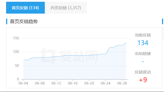 從愛站的數據可以看到134個外鏈(首頁反鏈),而網站本身是沒有友情鏈接欄目的,可以看出,網站主要的外鏈手段是外鏈采購。