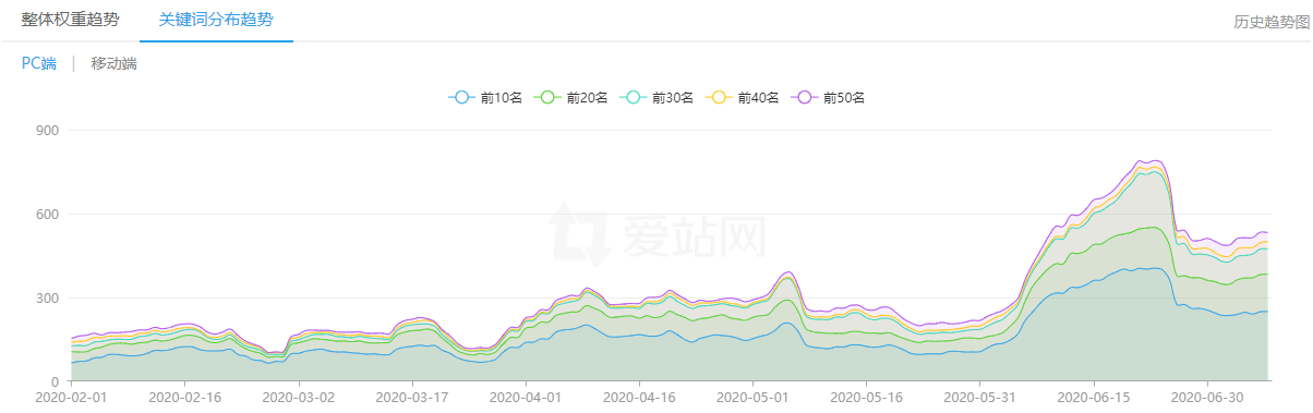 1、網(wǎng)站關(guān)鍵詞總數(shù)在上半年一直穩(wěn)定在200左右,6月隨著股票進(jìn)入牛市,有了一波大的上漲到了800左右(如下圖)