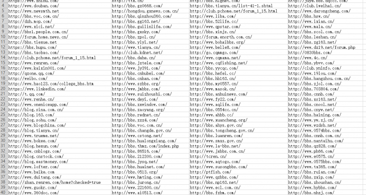 本次共獲得網站數量1452個,合每個網站的外鏈數量是:6.8個。過程中,發現很多網站已經不能訪問,只能刪除;還有大量網站是同一個域名出現多個二、三級域名。也只能通過程序刪除,最終剩下1007個站點。提取根域名的方法還比較麻煩,感興趣的可以看這里python提取根域名。